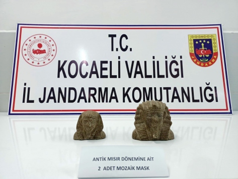 Kocaeli İl Jandarma Komutanlığınca "tarihi eser kaçakçılığıyla mücadele" kapsamında İzmit ilçesi Sepetçiler Mahallesi'nde düzenlenen operasyonda, antik Mısır dönemine ait tanrı ve tanrıçayı simgeleyen 2 mozaik mask heykel ele geçirildi.