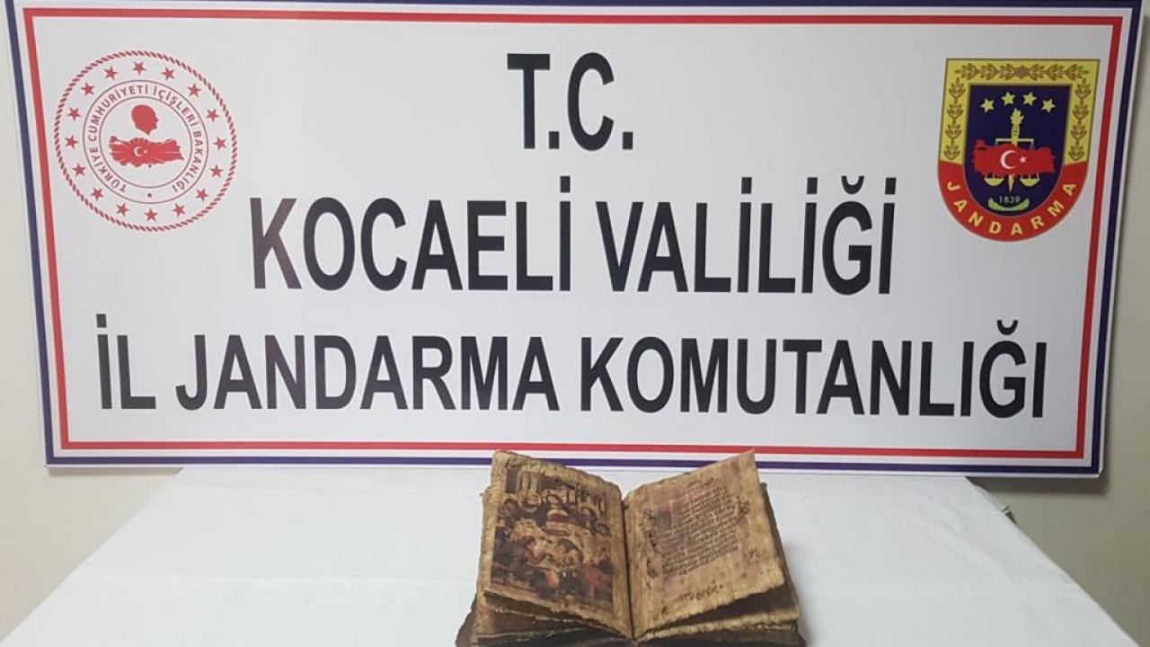 Araçtaki aramada, torpido bölümünde gizlenmiş tarihi eser olduğu değerlendirilen İncil ele geçirildi.