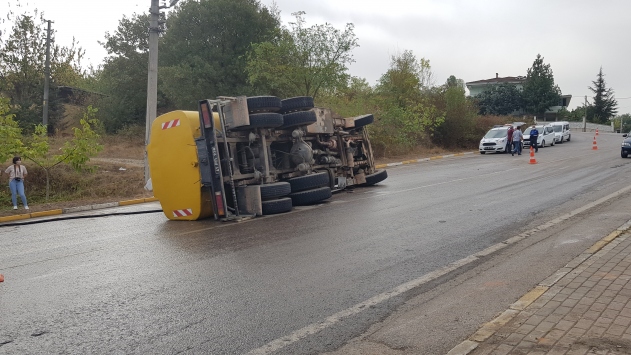 Kullar Yakacık Mahallesi'nde Başiskele Belediyesine ait Gökhan S. idaresindeki 41 FD 228 plakalı su tankeri, virajda sürücünün direksiyon hakimiyetini kaybetmesi sonucu devrildi.