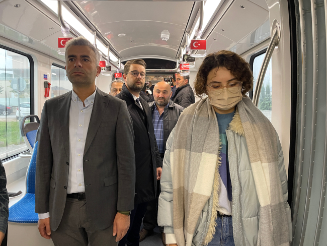 Tramvaydaki yolcular, sirenlerin çalmasının ardından İstiklal Marşı okudu, saygı duruşunda bulundu.