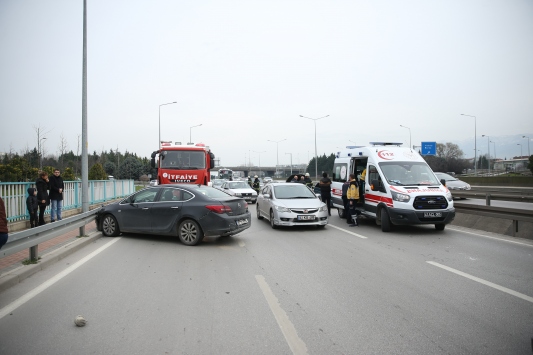 Kocaeli'nin İzmit ilçesinde alınan bilgiye göre, Rıfat G. idaresindeki 41 SF 543 plakalı otomobil, Yenişehir Mahallesi D-100 kara yolu yan yolda, aynı istikamette seyreden Faruk K. yönetimindeki 41 TE 962 plakalı otomobil ile Tamer T'nin kullandığı 34 GV 6514 plakalı otomobille çarpıştı.