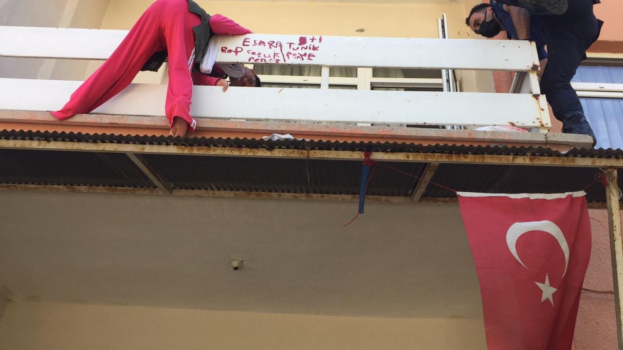 İhbar üzerine olay yerine polis ekipleri sevk edildi. Polis, binanın alt balkon korkuluklarından engelli vatandaşın bulunduğu balkona tırmandı. Polis, daha sonra düşmek üzere olan engelli vatandaşı, balkonun içine aldı.