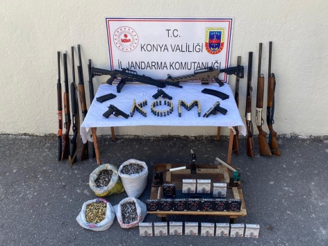 Jandarma Genel Komutanlığının sosyal medya hesabından yapılan açıklamada, KOM Daire Başkanlığı ile Konya İl Jandarma Komutanlığınca 5 farklı adrese yapılan operasyonda, 11 av tüfeği, tabanca, 2 kurusıkı tabanca ve fişek basma makinesi ile çok sayıda mühimmat ele geçirildiği bildirildi.