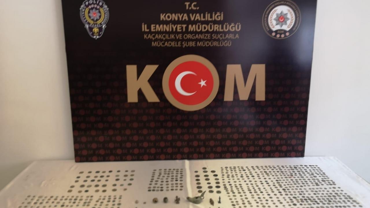 Araçta yapılan aramada, değişik dönemlere ait olduğu değerlendirilen 720 sikke ve farklı figürlerde 20 obje ele geçirildi.