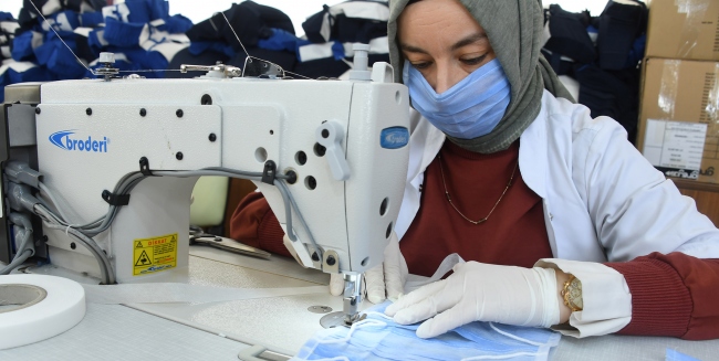 Bu kapsamda, kurs öğretmenleriyle çalışanları tarafından üretim atölyelerinde her gün 15 bin maske üretiliyor.