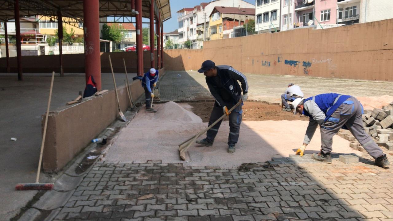 Aynı zamanda otopark olarak da kullanılan alanda zamanla yıpranan parkeler ekipler tarafından söküldü ve alt zemini doldurularak yeniden düzenlendi.