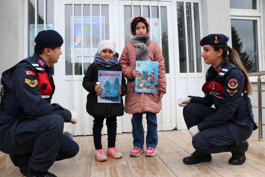 Mektubu yerine ulaştıracaklarını belirten jandarma ekipleri, iki kardeşe çikolata ile jandarmanın faaliyetlerini anlatan dergiler hediye etti.