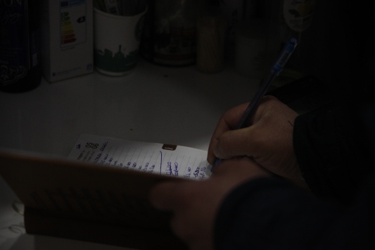 Bakkalın defter üzerinde yaptığı çalışmada, özellikle yeni tip koronavirüs (Kovid-19) nedeniyle zor günler geçirenler başta olmak üzere borcu olanlar belirleniyor.
