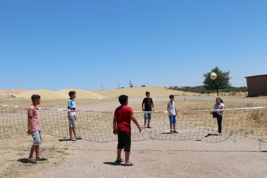 "Köylerde voleybol sahasını kuruyoruz. Bu konuda Türkiye Voleybol Federasyonu da bize destek oluyor, sağ olsunlar. Atletizm çocuk oyunlarını gerçekleştiriyoruz. Köyün en hızlısını, en güçlüsünü, en uzun atlayanını eğelenceli bir şekilde bulmaya çalışıyoruz. Çocuk atletizm parkurları yapıyoruz. Çocuklar bu tür etkinliklere alışkınlık değiller. Yüreğimizdeki sevgimizi çocuklara hissettirmeye çalışıyoruz. Onlardan da o karşılığı alıyoruz. 40 derece sıcaklıkta birlikte etkinlikler yaparak mutlu olmaya çalışıyoruz."