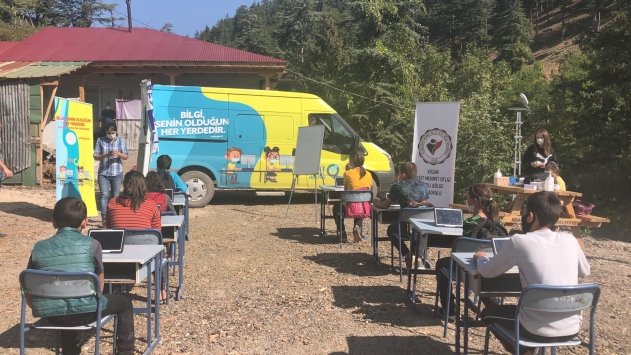 İlçe Milli Eğitim Müdürlüğünden yapılan açıklamaya göre, ilçeye 80 kilometre uzakta Toros Dağı eteklerinde bulunan Kapıkaya Mahallesi'ne giden EBA Mobil Destek Aracı öğrencilere hizmet verdi.