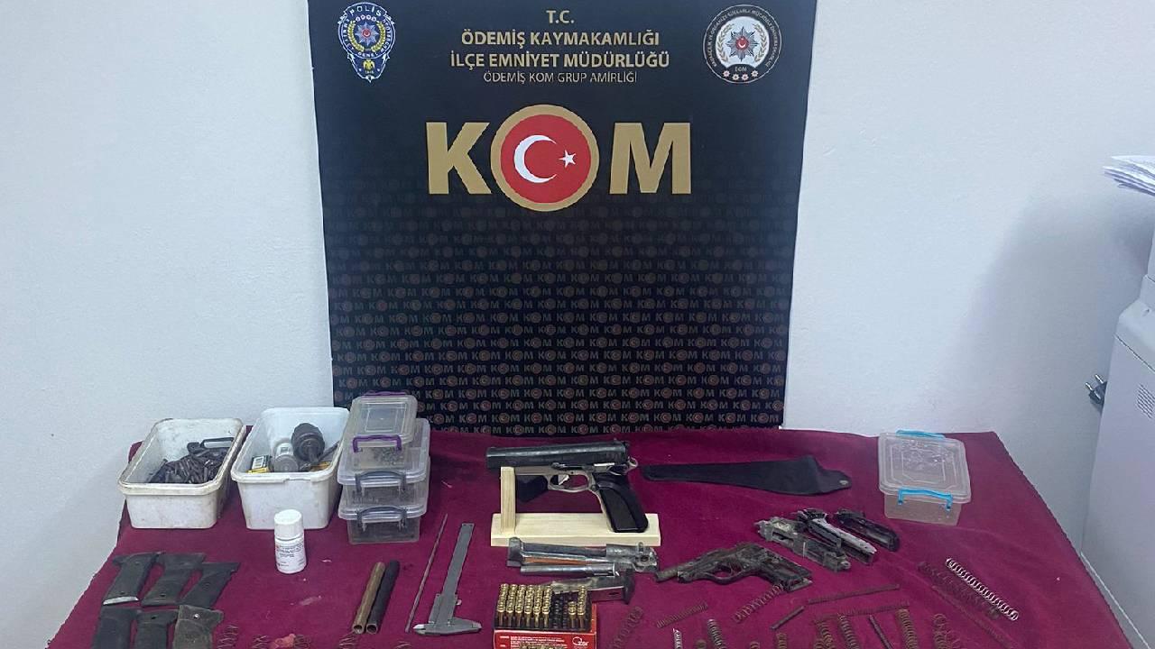 Ödemiş İlçe Emniyet Müdürlüğü ekipleri, S.K'nin evinde kuru sıkı tabancaların namlularını açarak satışını yaptığı bilgisine ulaştı.