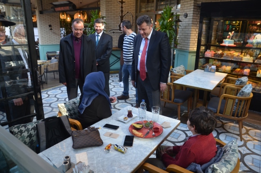 Kütahya’da, Vali Yardımcısı Halil İbrahim Ertekin, İl Sağlık Müdürü İsmail Zehir, İl Emniyet Müdür Yardımcısı Zafer Kunduz, sağlık ve emniyet personeli ile Atatürk Bulvarı'ndaki bazı kafe ve restoranlarda denetim ve ziyaretlerde bulundu.