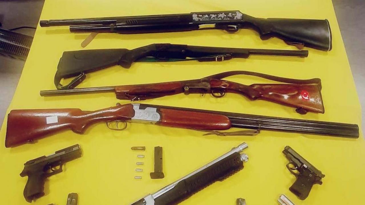 5 ayrı adrese düzenlenen operasyonda kaçak olduğu belirlenen 5 yivsiz av tüfeği, 3 kurusıkı tabanca, 1 özel yapım tabanca şarjörü ve 5 fişek ele geçirildi.