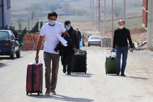 Sağlık kontrolünden geçirilen kişiler, otobüslerle memleketlerine gönderildi.