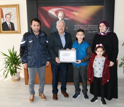 Durumu öğrenen Lapseki Belediye Başkanı Eyüp Yılmaz, Ahmet Samet Sarı'yı, annesi Altun Sarı, babası Metin Sarı ve öğretmeni Erdinç Özdinç ile makamında kabul etti.