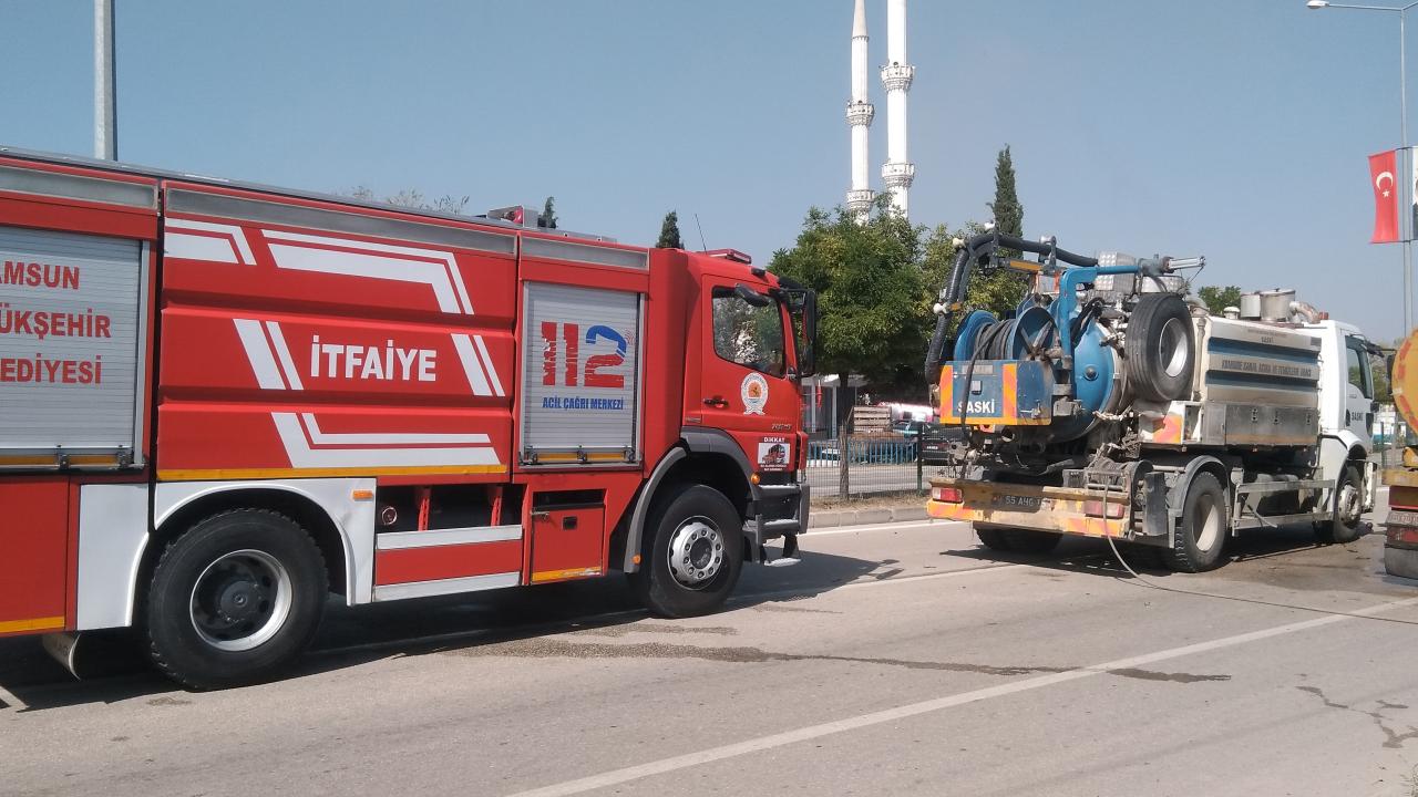 Patlama sonrasında çıkan yangına olay yerinden geçen Samsun Büyükşehir Belediyesi Vezirköprü SASKİ ekibi su yüklü tankeri ile müdahale etti. Olay yerine sevk edilen itfaiye ekiplerinin de müdahalesiyle yangın büyümeden söndürüldü.