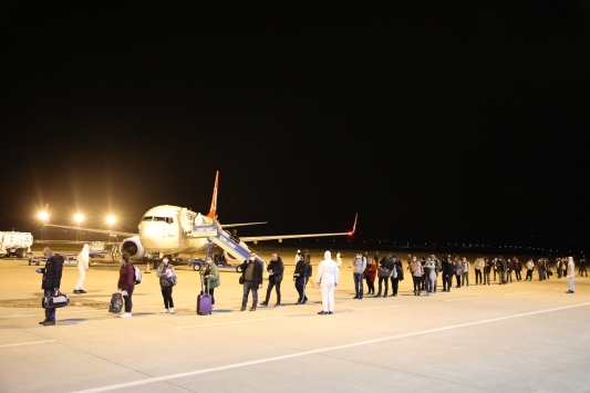Yurt dışından getirilenler, daha sonra, karantina sürecini geçirecekleri Gençlik ve Spor Bakanlığı Bingöl Kredi ve Yurtlar Kurumu Mürsel Paşa Öğrenci Yurdu'na yerleştirilmek üzere bekletilen otobüslere alındı.