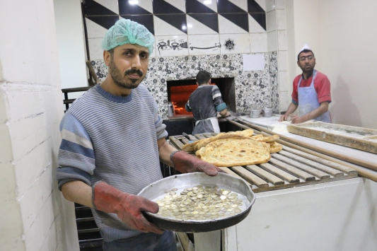 Bahçelievler Mahallesi'nde fırın işleten Hacı ve Halil Kasar kardeşler, koronavirüse karşı tedbir olarak madeni paraları önce yıkıyor, ardından su koyduğu tepsinin içerisinde 180 dereceye ulaşan fırında 20 dakika ısıtıyor.