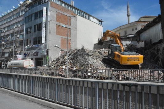 Kentteki hasarlı binaların yıkım işlemlerinin süreceği belirtildi.
