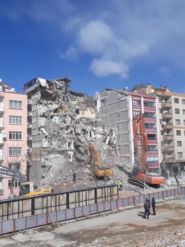 Kent merkezindeki Sivas Caddesi'nde bulunan 6 katlı Atmaca Apartmanı'nda cuma günü başlayan yıkım çalışmaları geniş güvenlik önlemleri altında sürdürülüyor.