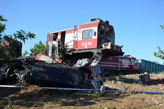 Bölgeye giden ekipler iki yük treninin çarpıştığını belirledi.