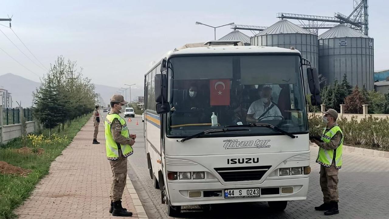 Malatya Organize Sanayi Bölgesi girişinde oluşturdukların kontrol noktasında işçi servislerini kontrol eden ekipler, durdurdukları araçlarda maske ve mesafe ile HES kodu denetimi gerçekleştirdi.