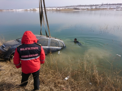 Suya batan ve gözden kaybolan aracın içinde başka birilerinin olabileceği ihtimali üzerinde duran Malatya Büyükşehir Belediyesi Su Altı Arama Kurtarma ekibi, göle dalarak otomobili kontrol etti.