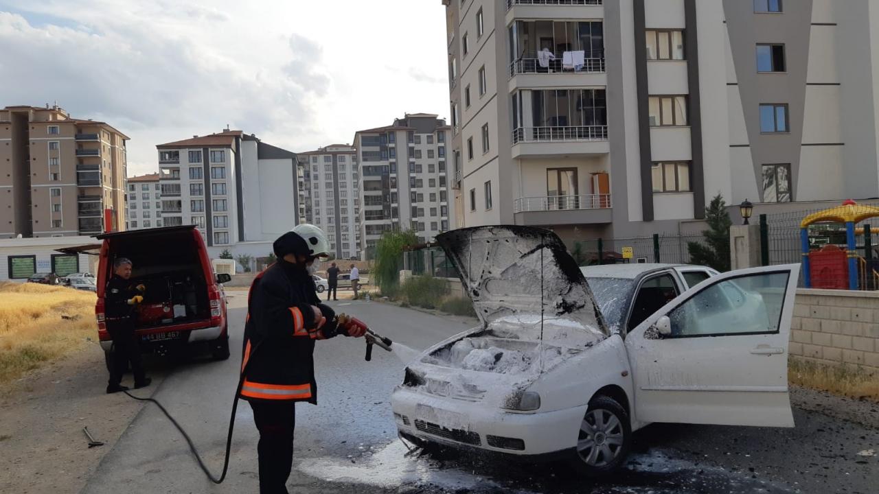 Yeşilyurt ilçesine bağlı Tecde Mahallesi Kozluk Sokak'ta seyir halinde olan sürücüsü ve plakası öğrenilemeyen otomobil seyir halinde iken alev aldı.