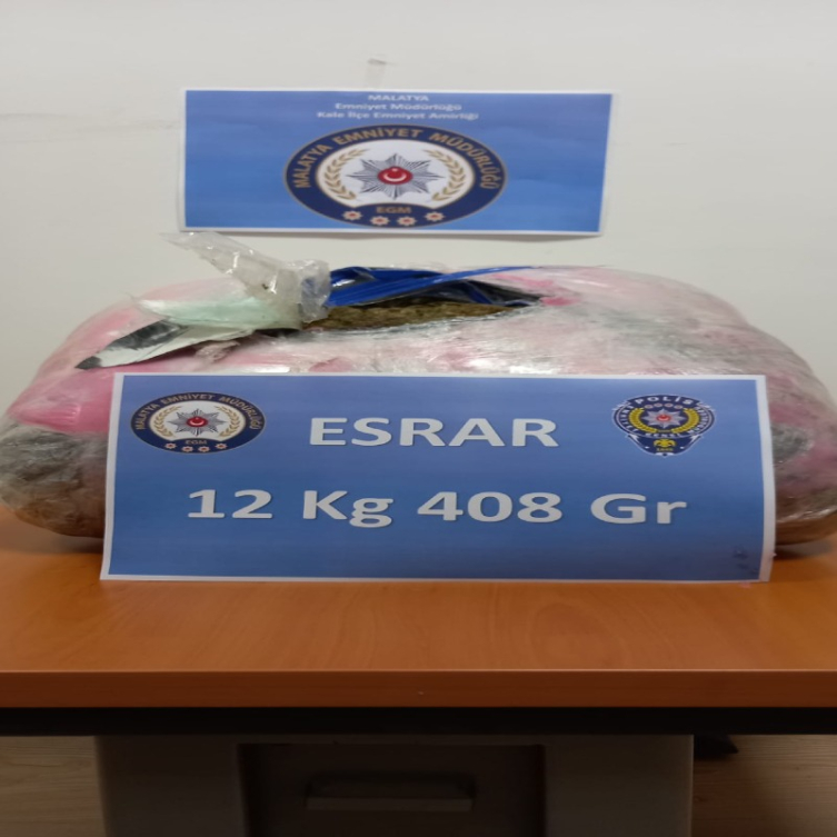 Otobüste yapılan aramada, yolculardan E.K.'nın üzerinde ve valizinde 12 kilo 408 gram esrar ele geçirildi.