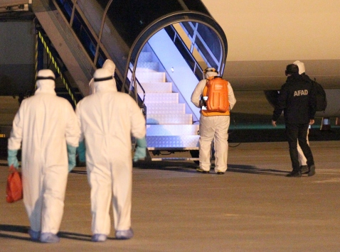 Özel kıyafetli görevlilerce uçakta ateşleri ölçülen ve sağlık kontrolünden geçirilen vatandaşlar, pasaport ve evrak işlerinin tamamlanmasının ardından uçaktan indirildi.