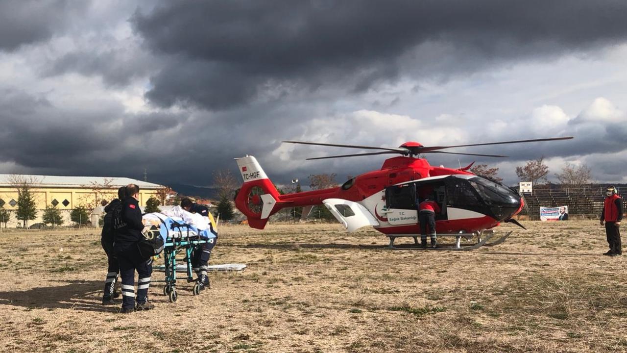 Apaydın, buradan Turgut Özal Çim Sahası'na iniş yapan ambulans helikopter ile Manisa Celal Bayar Üniversitesi Hafsa Sultan Hastanesine sevk edildi.