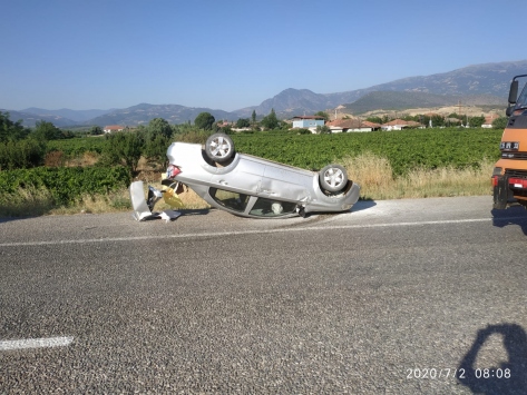 Manisa'nın Alaşehir ilçesinde, Ramazan A.'nın (65) kullandığı otomobil, Alaşehir-Buldan yolunun Hacıaliler Mahallesi kavşağı yakınlarında kontrolden çıkarak refüjü aştı, karşı şeride geçerek devrildi.