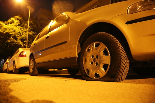 Polis ekiplerinin yaptığı incelemede, sokaktaki 12 aracın lastiklerinin kesildiği belirlendi.