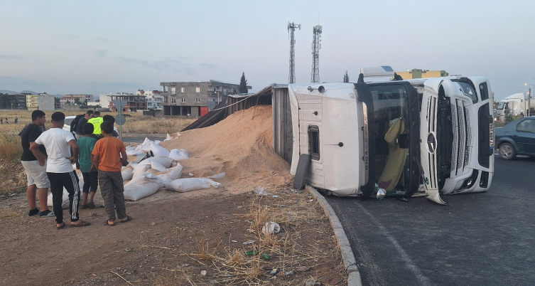 Sürücüsünün kimliği henüz öğrenilemeyen tır, Mardin Kızıltepe-Viranşehir kara yolunun Çevre Yolu Kavşağı mevkisinde kontrolden çıkarak devrildi.