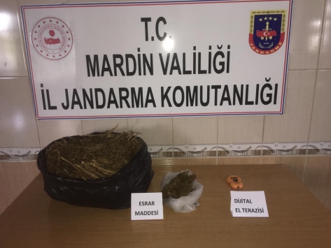 Mardin İl Jandarma Komutanlığından yapılan açıklamaya göre, Midyat İlçe Jandarma Komutanlığı ekiplerinin istihbari çalışmaları neticesinde, Bahçelievler Mahallesi Hastane Sokağı'nda şüpheli Z.D'ye ait 06 AEZ 449 plakalı araçtaki aramada 5 kilo 60 gram esrar bulundu.