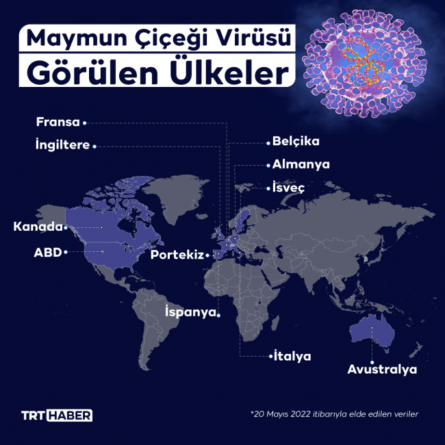 Virüs ilk olarak 7 Mayıs’ta İngiltere’de görüldü. Ardından hızla Avrupa ülkeleri ve ABD’ye yayıldı. Şu ana kadar İngiltere’nin yanı sıra İspanya, Portekiz, Belçika, İsveç, ABD, İtalya, Almanya, Fransa, Kanada, Avustralya’da görüldü. Ülkeler hastalığa karşı alarma geçti.
