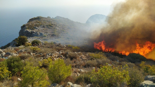 Gözce Mahallesi'ndeki ormanlık alanda dumanların yükseldiğini gören vatandaşlar durumu yetkililere bildirdi.