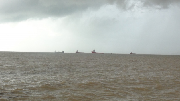 Açıktaki 8 kuru yük gemisi, fırtına nedeniyle oluşan büyük dalgalardan korunabilmek için limana sığındı.