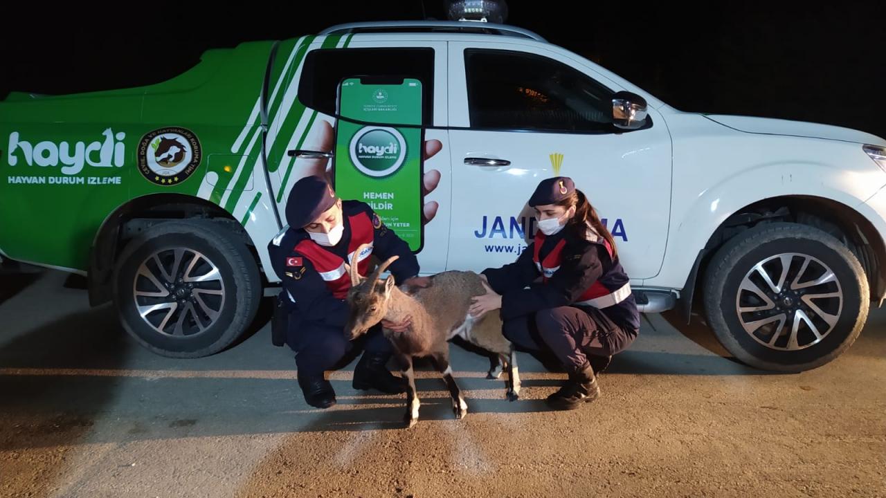 İlçe Jandarma Komutanlığı ekipleri, Kocaoluk Mahallesi Gökler Deresi kenarında bitkin ve ıslak halde bir yaban keçisi yavrusu buldu.