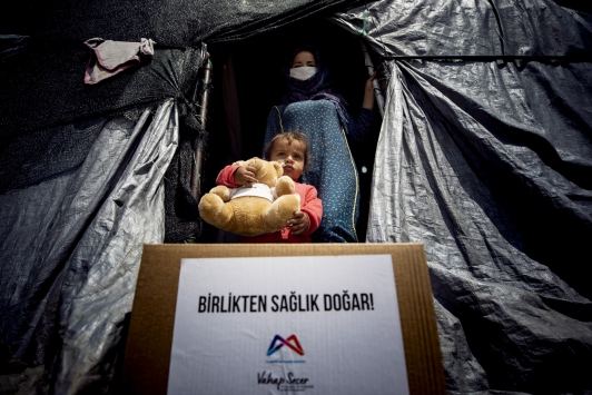 Birleşmiş Milletler Uluslararası Göç Örgütü (IOM) ve Mersin Büyükşehir Belediyesi iş birliğiyle yeni tip koronavirüse (Kovid-19) karşı alınan tedbirler ve yürütülen sosyal yardım çalışmaları kapsamında, kentte çadırlarda yaşayan mevsimlik tarım işçilerine gıda kolisi ve sağlık paketi yardımı yapıldı.