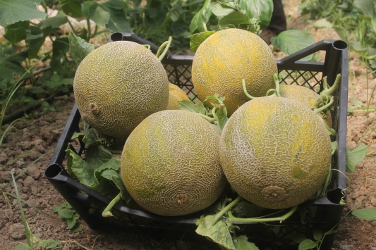 Atayurt Mahallesi'nde örtü altı domatese alternatif ürün olarak yetiştirilen kavun, çiftçiler tarafından hasadı yapıldıktan sonra Atayurt Hali'ne götürülüyor.