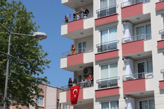 Oturdukları dairelerin balkonuna çıkan bazı vatandaşlar "çifte telli" oynayıp göbek atarken, bazıları da oynayanlara alkışlarla tempo tuttu.
