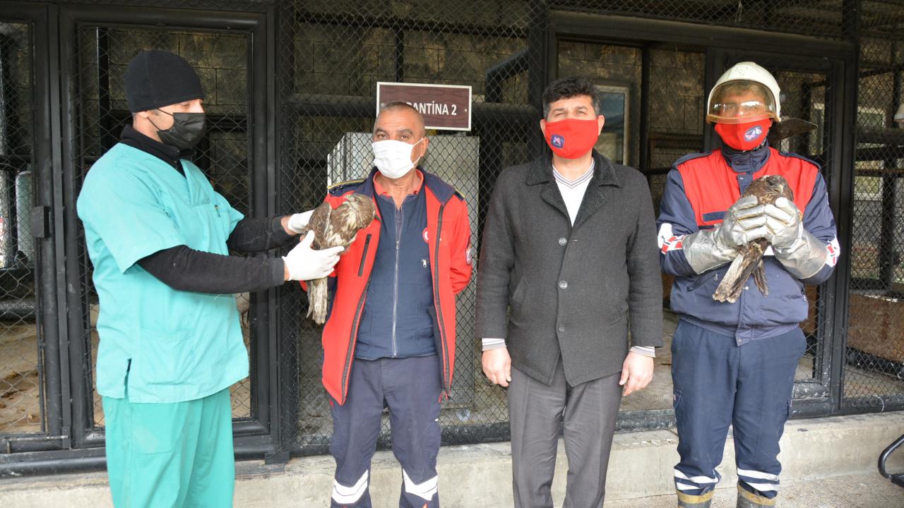Olay yerine gelen itfaiye ekipleri, merdiven yardımıyla girdikleri kanaldan şahinleri kurtardı.