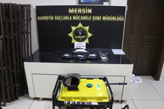 Zanlıların bulunduğu ticari taksiyi Toroslar ilçesinde durduran ekipler, aracın bagajındaki jeneratörden şüphelendi.