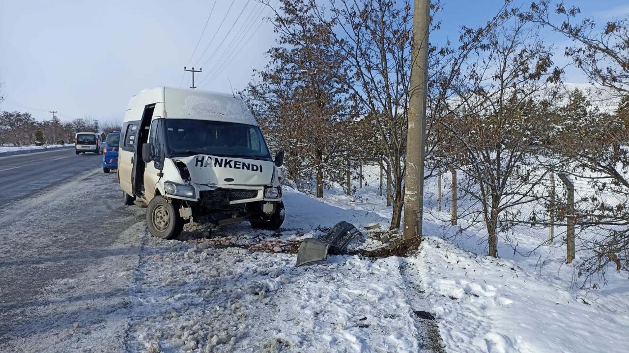 Elazığ Malatya karayolunda, E.Ü. idaresindeki minibüs, gizli buzlanmadan dolayı sürücünün direksiyon hakimiyetini kaybetmesiyle yol kenarındaki aydınlatma direğine çarptı.