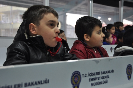 550 ilkokul öğrencisine yönelik 2 günlük program çerçevesinde tır içerisinde teorik, açık alanda ise uygulamalı eğitim veriliyor.