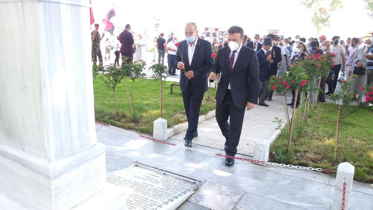 İskele Meydanı'nda bulunan Şehitlik Anıtı önünde düzenlenen törene, Mudanya Kaymakamı Faik Oktay Sözer ve Belediye Başkanı Hayri Türkyılmaz’ın yanı sıra İlçe Jandarma Komutanlığı, İlçe Emniyet Müdürlüğü, Sahil Güvenlik Komutanlığı yetkilileri, sivil toplum kuruluşları ve siyasi partilerin temsilcileri ile vatandaşlar katıldı.