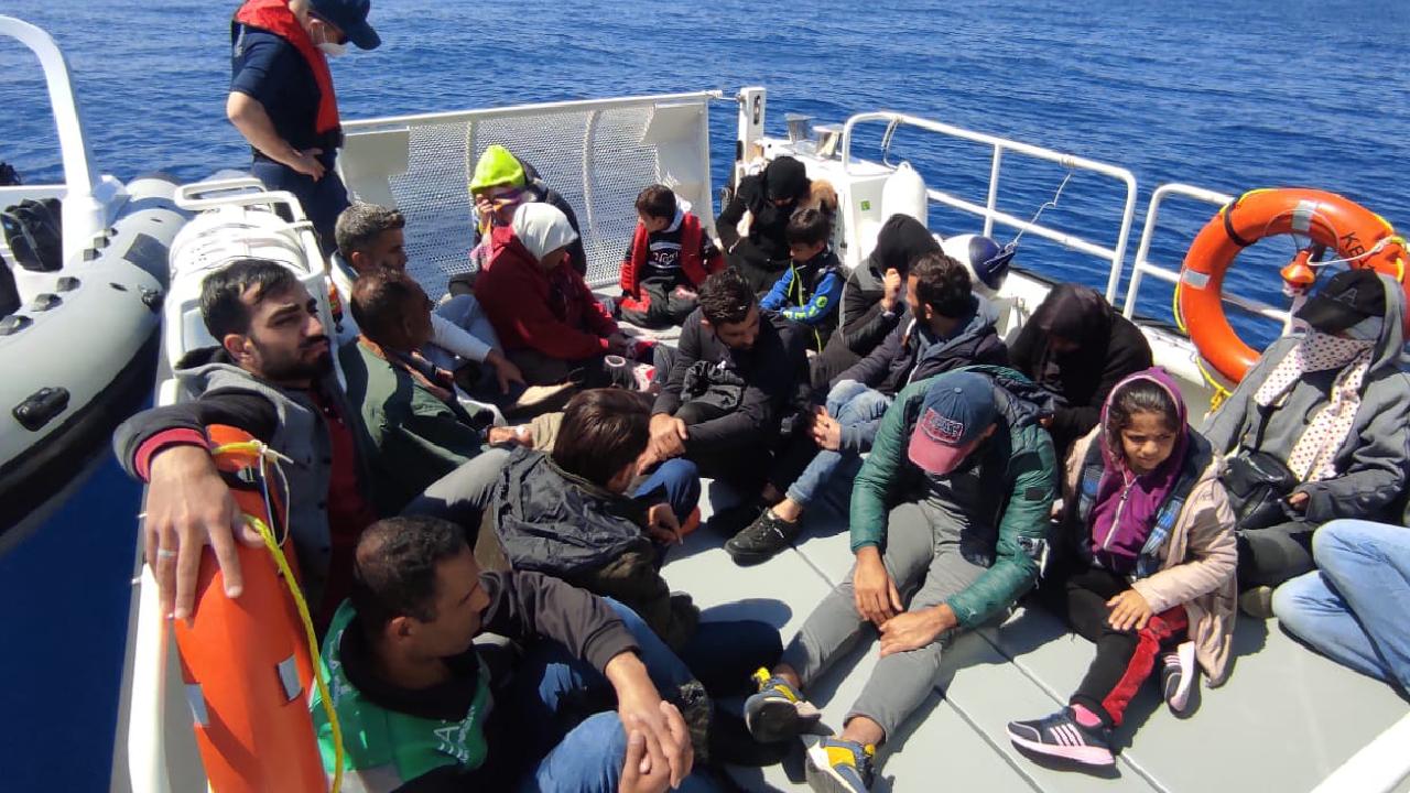 Ekipler, Yunanistan unsurlarınca Türk kara sularına itilen lastik bottaki 18 düzensiz göçmeni bota alarak karaya çıkardı.