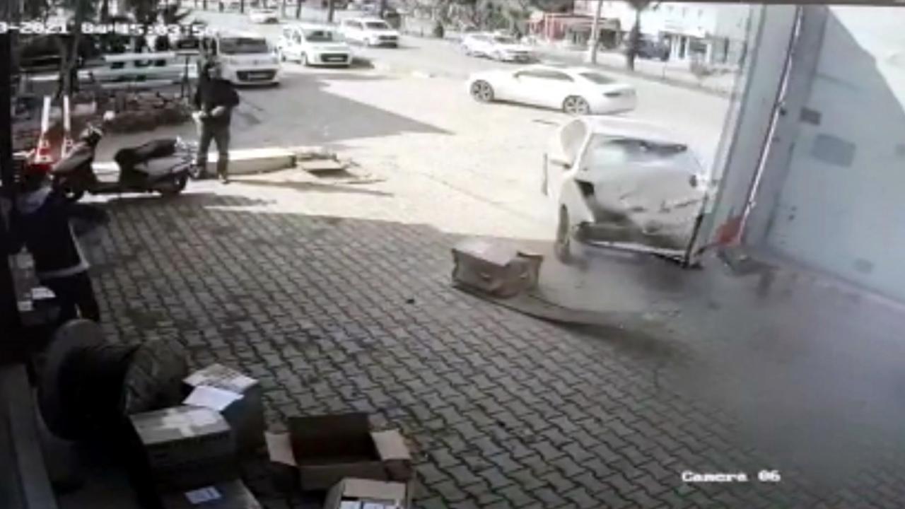 Maddi hasara yol açan kaza anı ve ardından yaşananlar, çevredeki iş yerinin güvenlik kamerasına yansıdı.