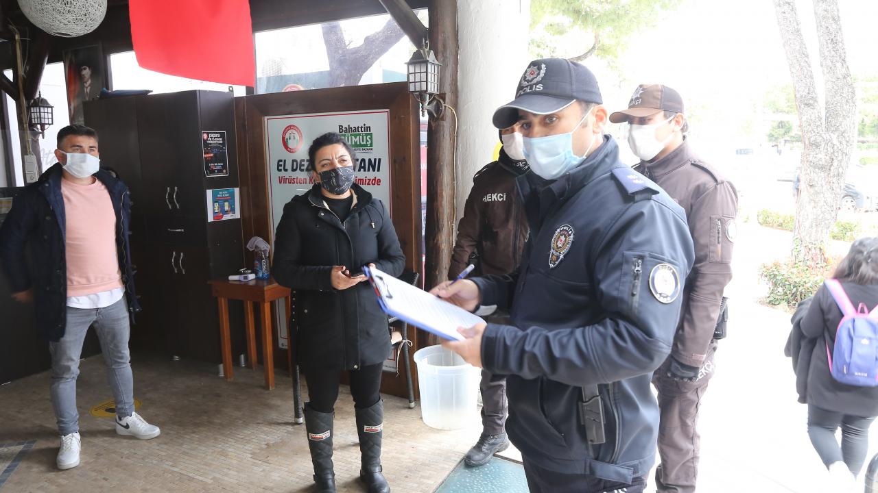 Fethiye'de Kaymakam Eyüp Fırat ile kolluk kuvvetleri, ilçe merkezindeki kafeterya ve işletmelerde Kovid-19 tedbirlerini denetledi.
